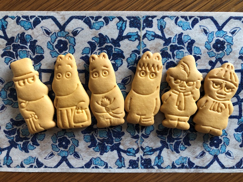 中身のビスケットはムーミンパパ、ムーミンママ、ムーミントロール、フローレン、スナフキン、リトルミイの6種類。それぞれ表情があってとってもかわいい!