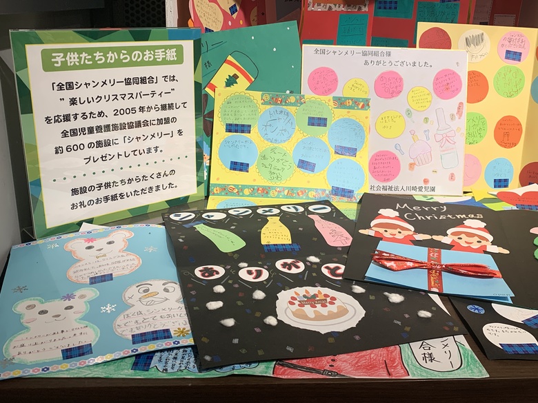 全国シャンメリー協同組合は、こどもたちの“楽しいクリスマスパーティ”を応援するため、2005 年から継続して、全国の約 600 の児童養護施設へシャンメリーをプレゼントしているそうです。