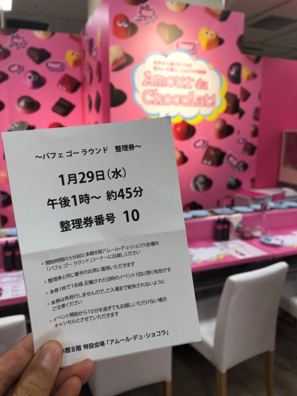 これはお菓子好きとしては体験しなければ!ということでさっそく店頭受付にて、次の回の整理券をゲットしスタンバイ!