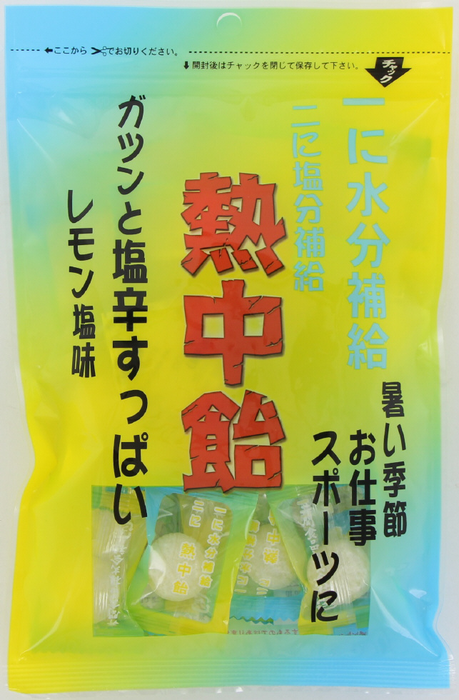 外での作業が多い、建築会社様からの要望で共同開発した商品のようです。塩辛すっぱいレモン味で、1粒あたりのサイズも大きいので長く楽しめます。関連商品で、熱中ゼリーもありますよ!