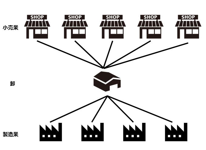 菓子メーカー各社が各店舗に配達していると、手間も時間もかかります。配送車がどれだけあっても足りそうにありません。 そこで、各菓子メーカーの商品を取りまとめ、まとまってからスーパーやコンビニエンスストアへ運んでいるのが、卸売業や問屋といわれる企業です。
