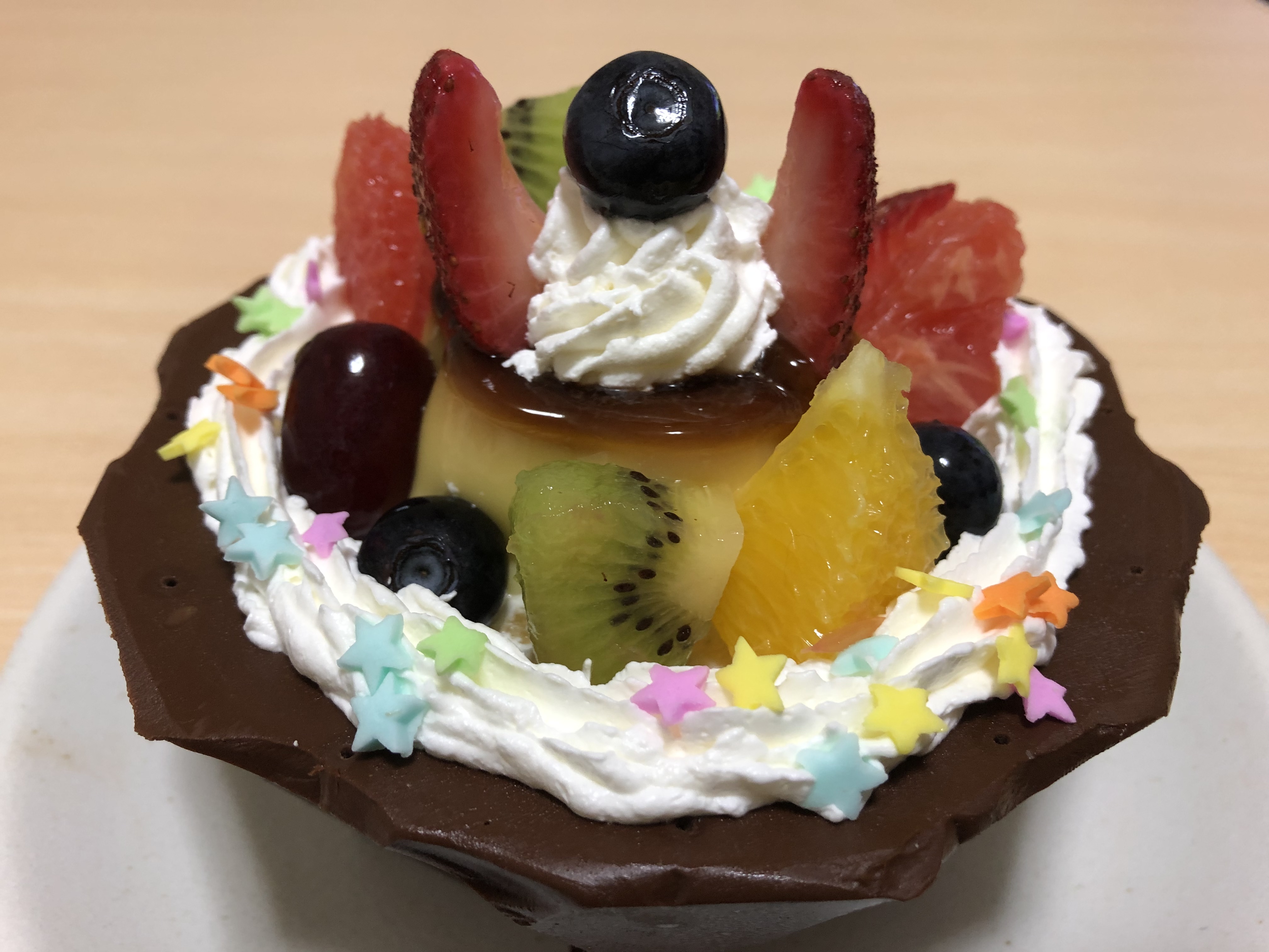 2 チョコの器でプリン・ア・ラ・モードをつくってみた
