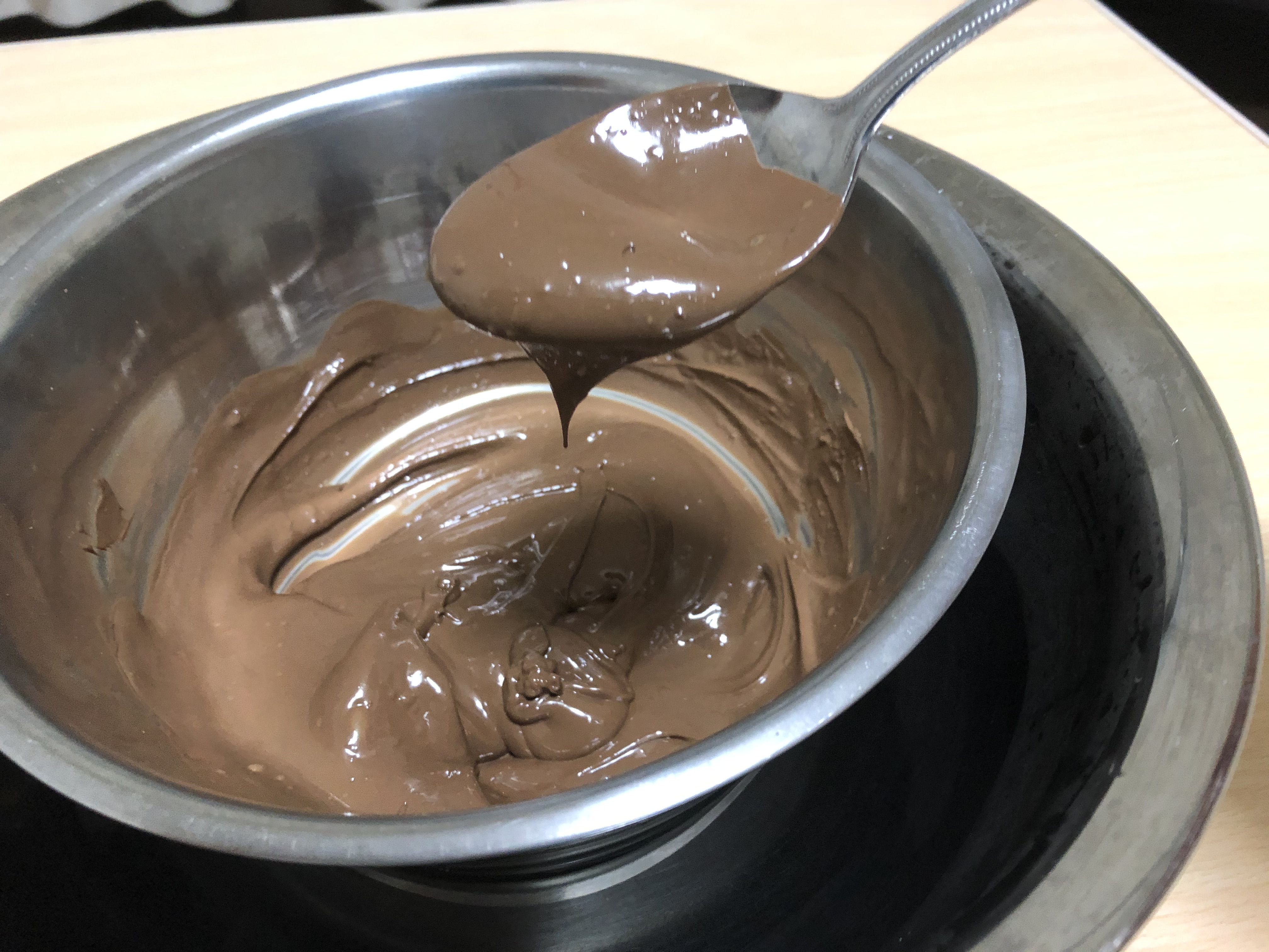 ①板チョコを砕き、湯煎し溶かします。※やけどに注意※
